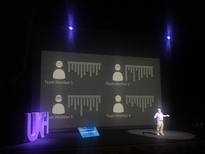 Đến với UXThailand2019 Jared Spool có bài phát biểu về chủ đề mơ hồ, và nhạy cảm, cũng rất khó đó là “future of UX design”. Nó khó bởi tương lai ai cũng “chém” qua qua được nhưng để định hình cho những người đi sau mình một cách nghiêm túc thì thực sự rất..rất khó. Nhưng Jared Spool đã làm rất tốt công việc của mình bằng lối kể chuyện nhẹ nhàng, dẫn dắt người nghe đi vào kịch bản của ông, để rồi mô hình hoá một loạt những ý tưởng mới. Một trong những ý tưởng quan trọng nhất đó là “broken comb” nhằm thể hiện ý tưởng phát triển kỹ năng của người làm trong ngày UX / digital design. Trước đây, khi đọc và học về Agile shortcuts hồi năm 2013, mình có biết đến T-shape model với cột dọc của chữ T là kiến thức nền tảng, và thanh ngang của chữ T là kiến thức mở rộng. (mọi người có thể google T-shape skill model để hiểu thêm nhé), nhưng với việc khuyến khích và đòi hỏi việc học liên tục của ngành, Jared Spool đã đưa ra đề xuất….học đều các kỹ năng, và theo thời gian, các kỹ năng này sẽ được tích luỹ, ghi nhớ rồi bổ trợ cho nhau (xem hình phía dưới).